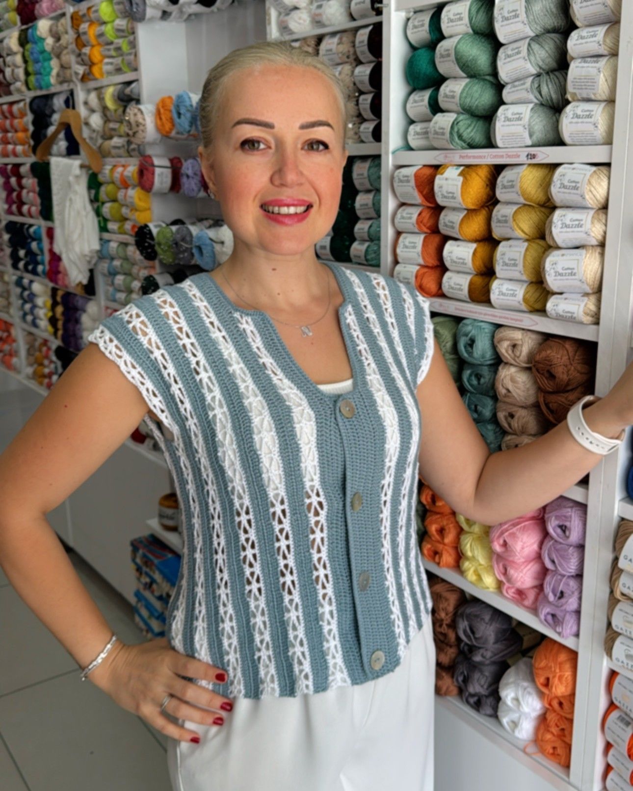 Kendi Bamora Blue Tığ İşi Bluzunuzu örmek için ihtiyacınız olan tüm ipler bu kitin içinde! ✨