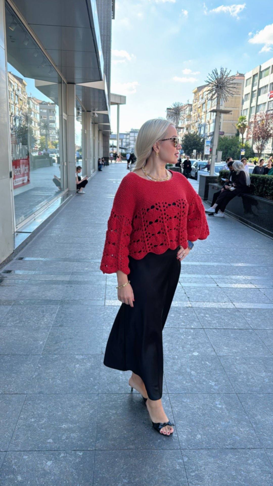 Nevel Cotton Bukle ipliği ile örülmüş, zarif ajurlu dokusuyla kırmızının tüm ihtişamını taşıyan özel bir bluz.