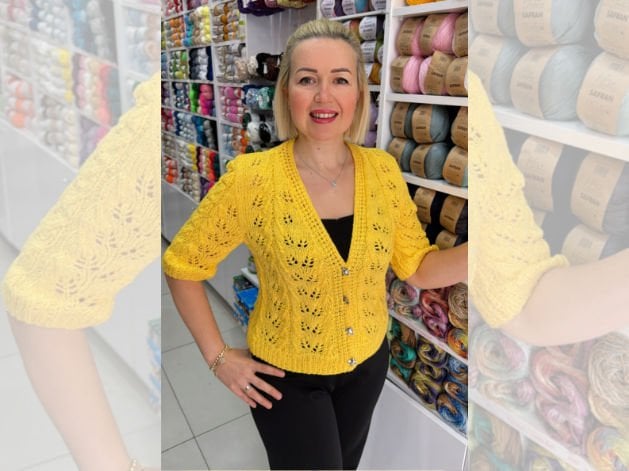 Nevel Örgü Butik’in özel tasarımı Limon Çiçeği Bukle Hırka, yumuşak ve hafif dokusuyla her mevsime uyum sağlayan şık bir parça! Nevel Cotton Bukle ipliğinin yumuşak ve doğal dokusu sayesinde konforlu bir kullanım sunarken, sarı rengiyle enerjinizi yükseltecek.