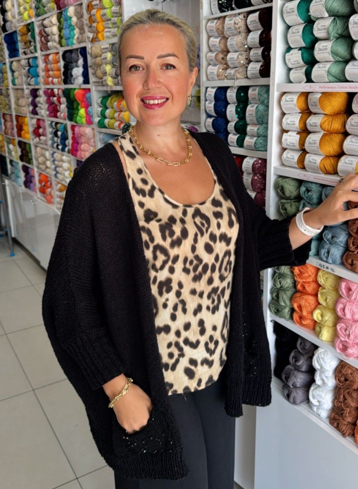 Şıklığı ve rahatlığı bir araya getiren bu hırka, Cotton Bukle ve Diamond ipleriyle örülmektedir. Ceplerindeki Diamond ip dokunuşlarıyla özel bir detay sunar.